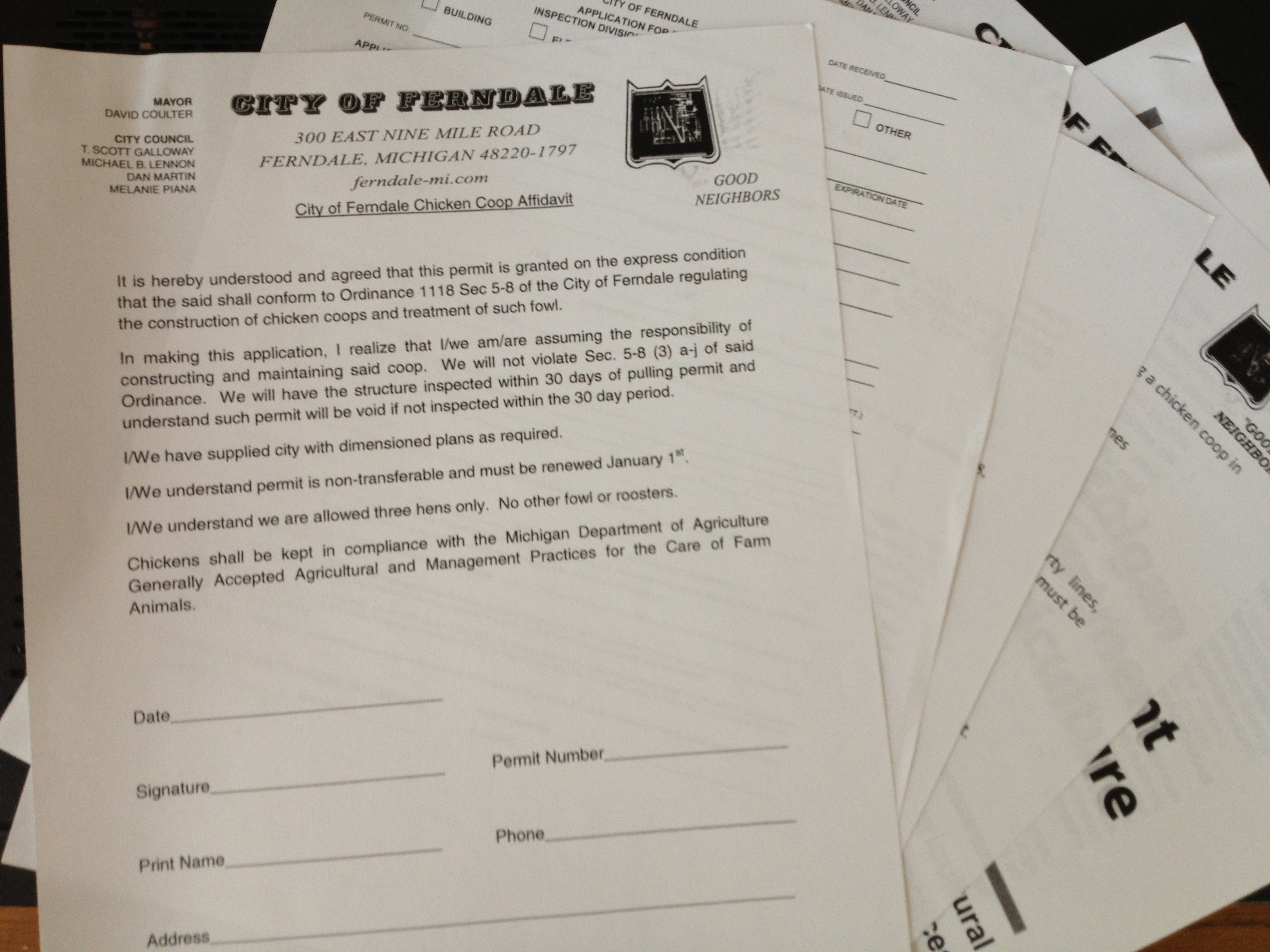 I plan on turning in the paperwork tomorrow, along with the $35 permit fee. A city hall employee told me it should take two to four weeks to have my site plan approved. At that point, I will be issued a building permit, and I’ll have six months to complete the coop.