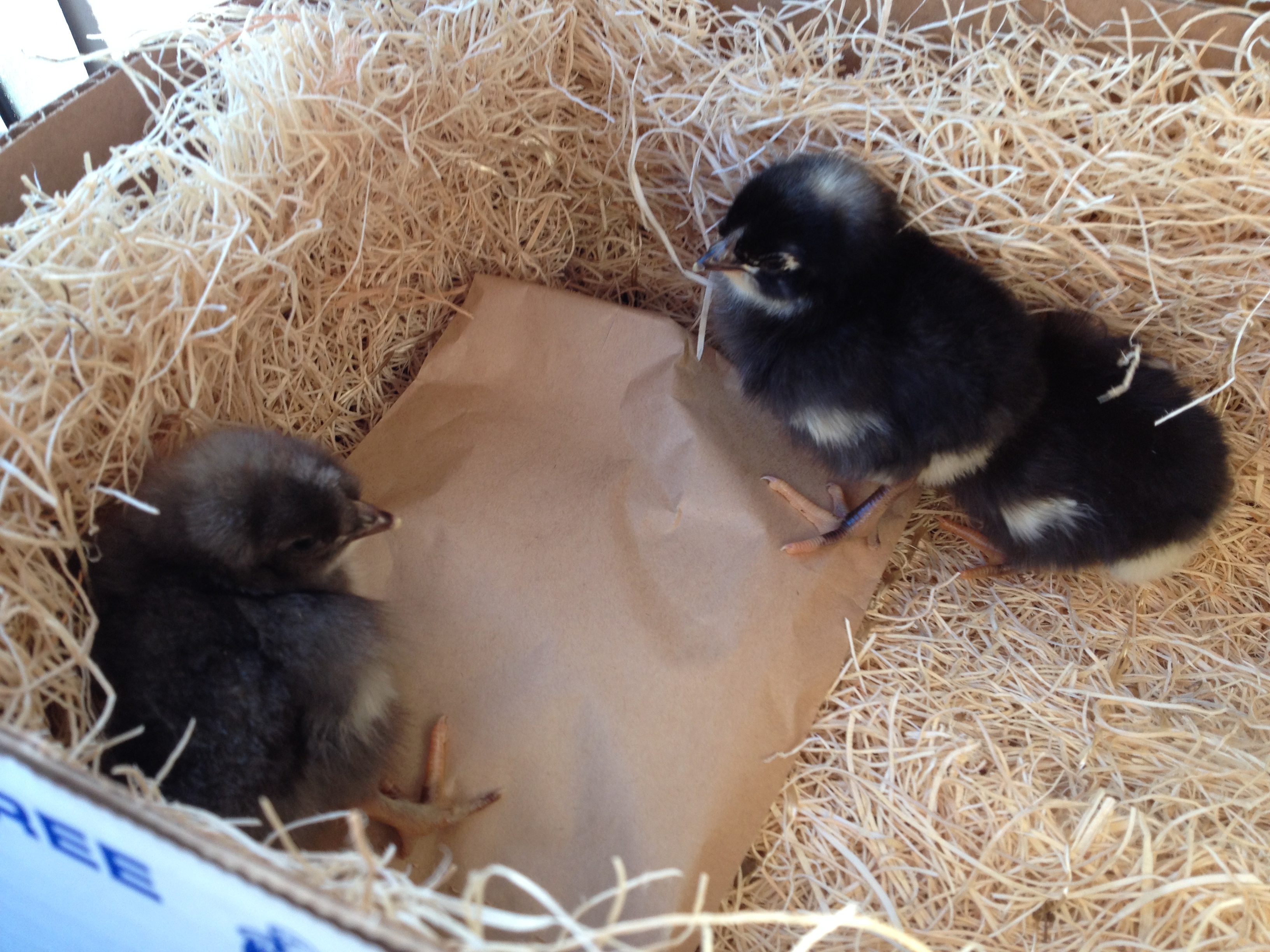 The ride home went quick for me, since I had chirping music to listen to. Matt held the chicks on his lap, occasionally lifting the lid to take a peek.
