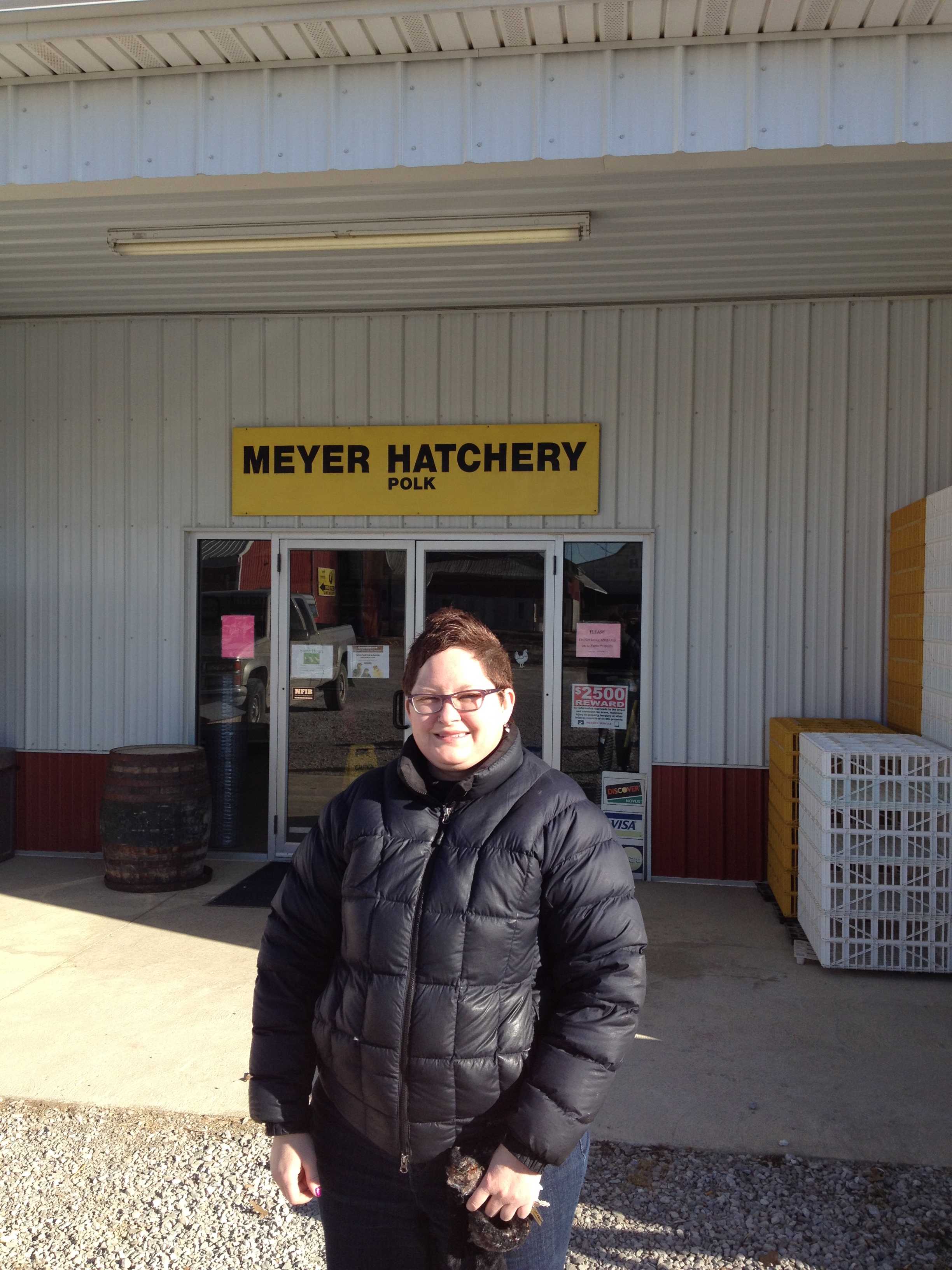 We drove an hour away to Polk, Ohio, where Meyer Hatchery is located. When we walked into the shop, a sound wall of peeps greeted us.
