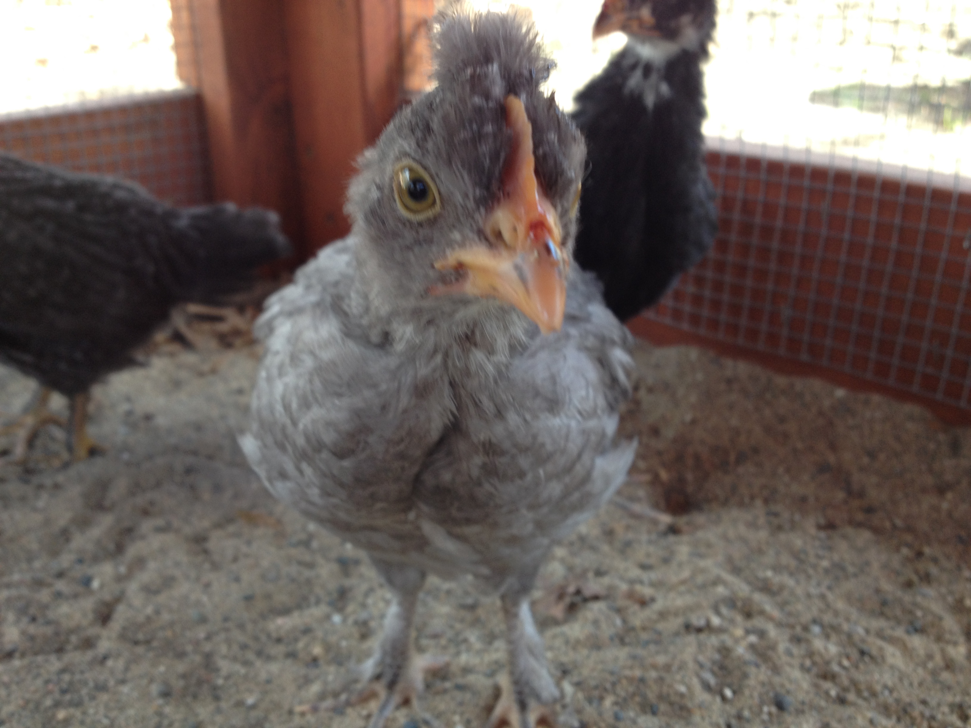 Gigi's nose, between her beak and comb, sports a small scrape. I got this shot by laying on my belly in the run.