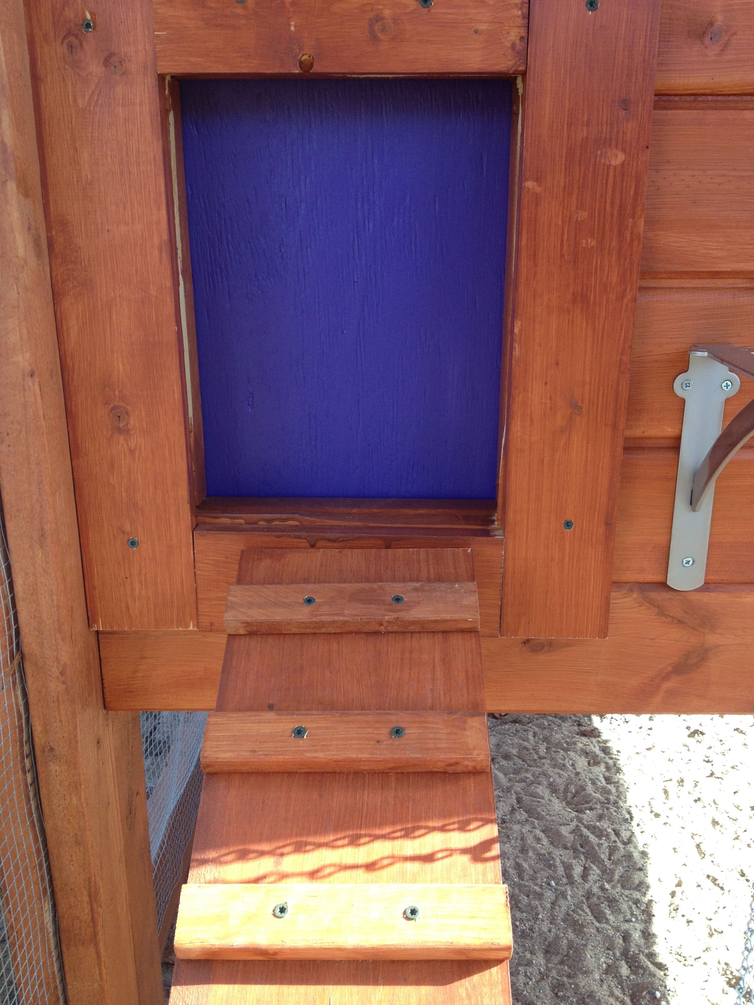 Construction tip: When installing mesh use a screw and a washer to hold it in place. We did this with the windows and installation was a breeze. For all the other mesh on the coop, we installed using a staple gun. It was difficult at best.