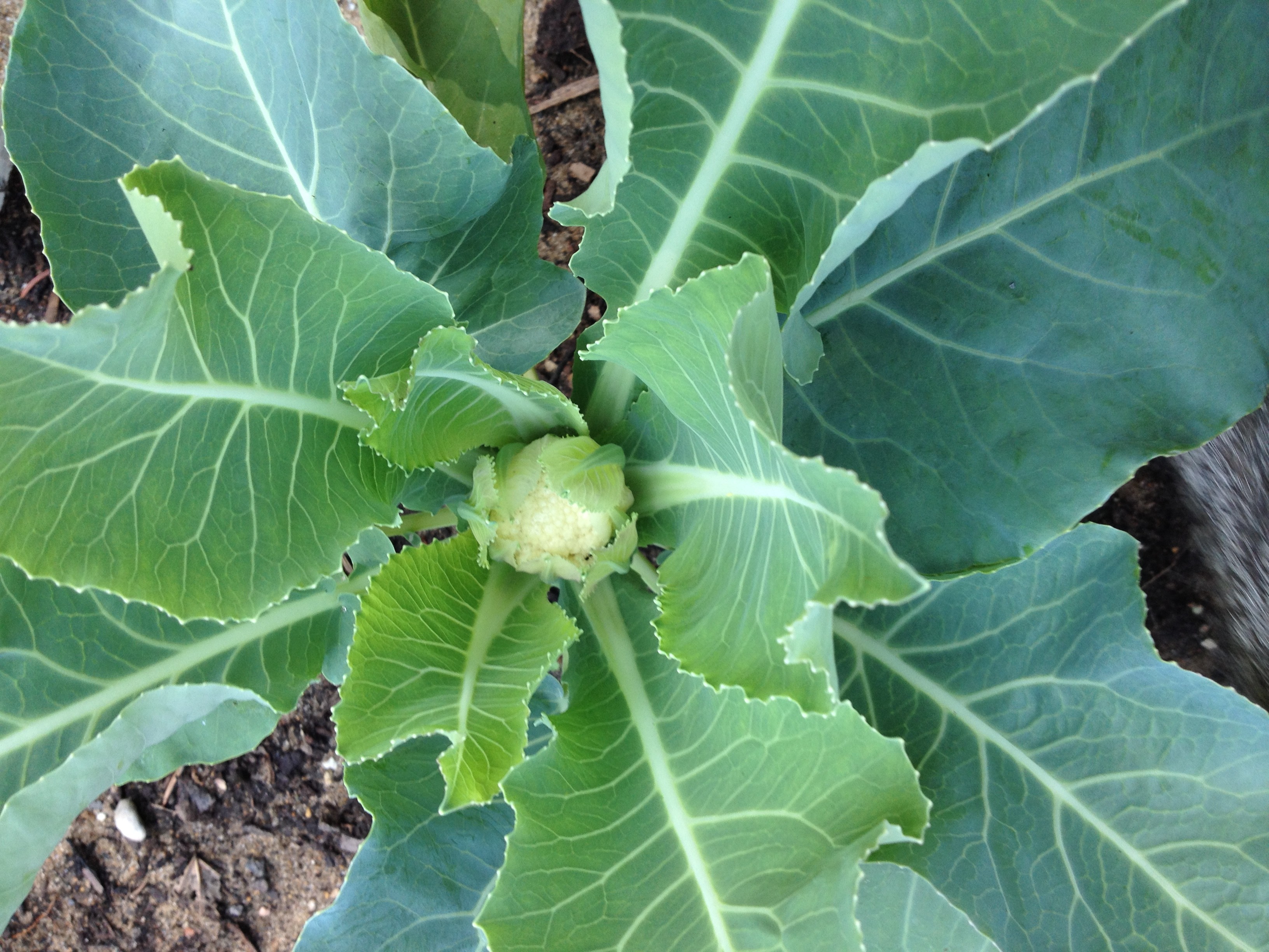 The greatest surprise is that the cauliflower plants now have baby cauliflowers growing in them. I don’t know how else to explain it, but there’s a small white ball in the heart of the plant. This greatly excited Matt. I took a photo and sent it to him, and somehow I imagine that greatly disrupted his morning at work. I didn’t want the cauliflower plants because, well, I hate cauliflower. But it’s Matt’s favorite vegetable, like, ever! So this development is huge, and a victory of sorts for him!