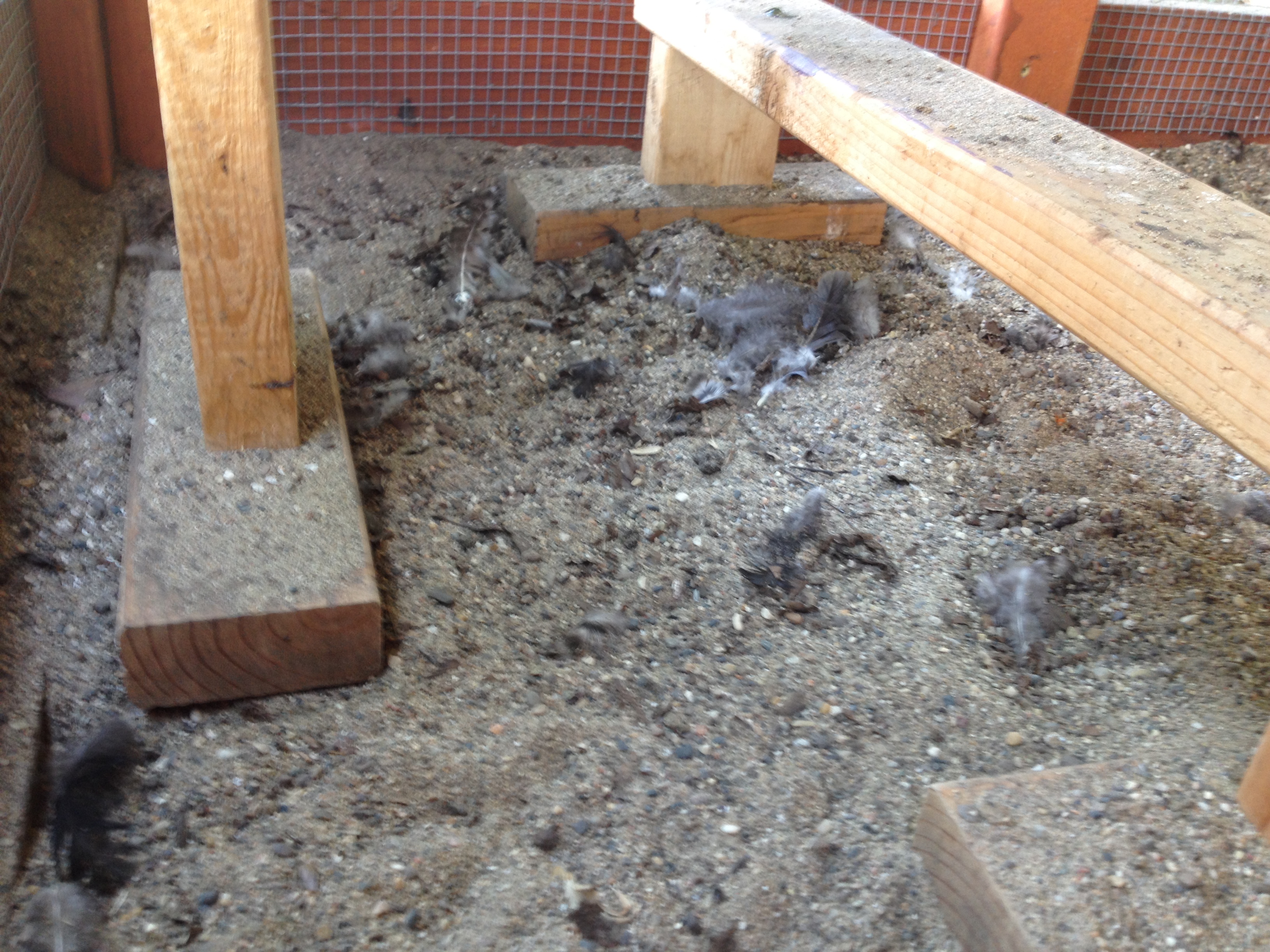 I had already gotten into a routine of scooping out the chicken poop on a daily basis. So I started with a light cleanup, including of the bazillion feathers the girls shed each week.