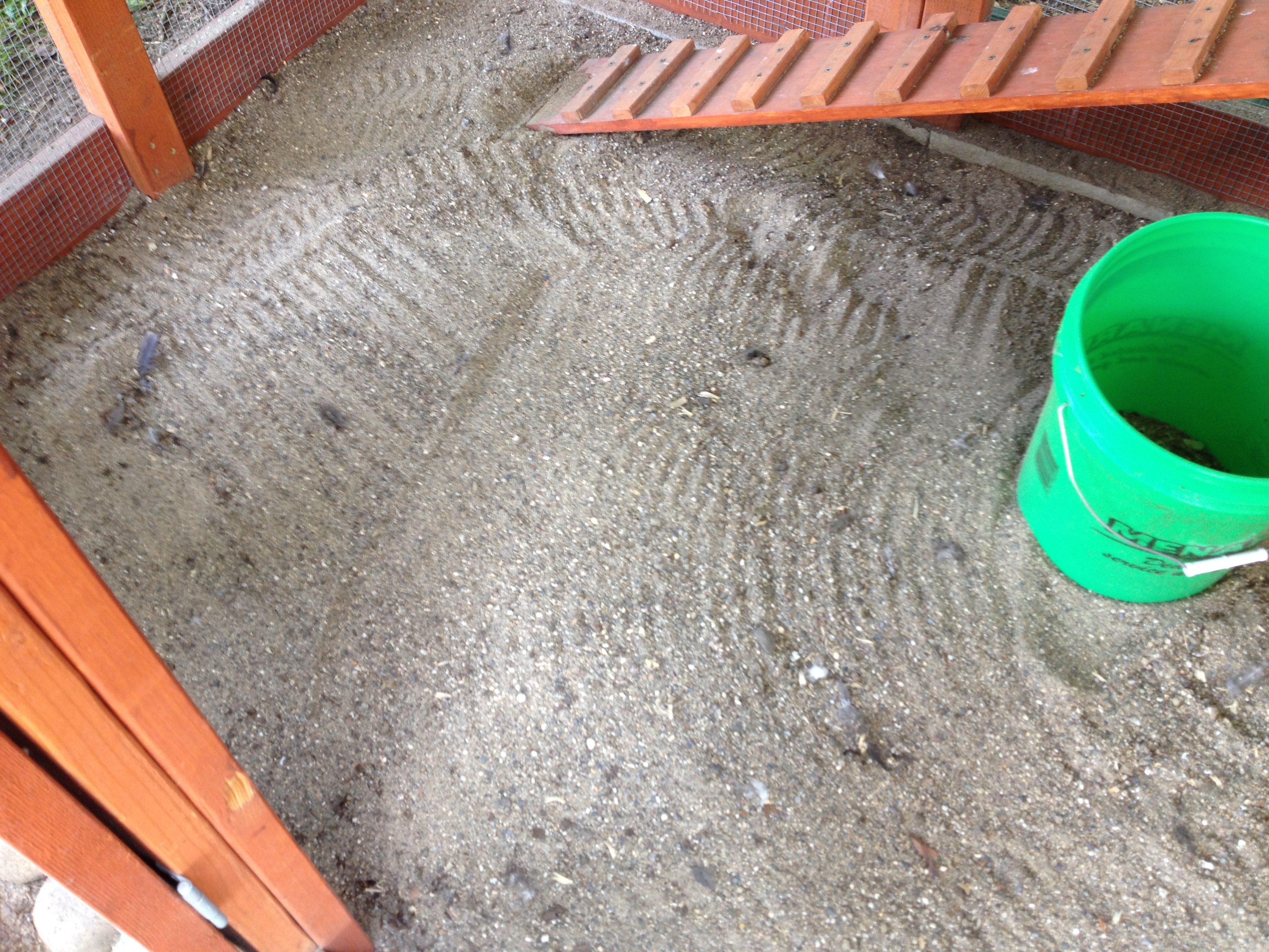 But the big test was with the next rainstorm, which came a couple days later. It was a huge storm, that splashed lots of water into the coop sand.